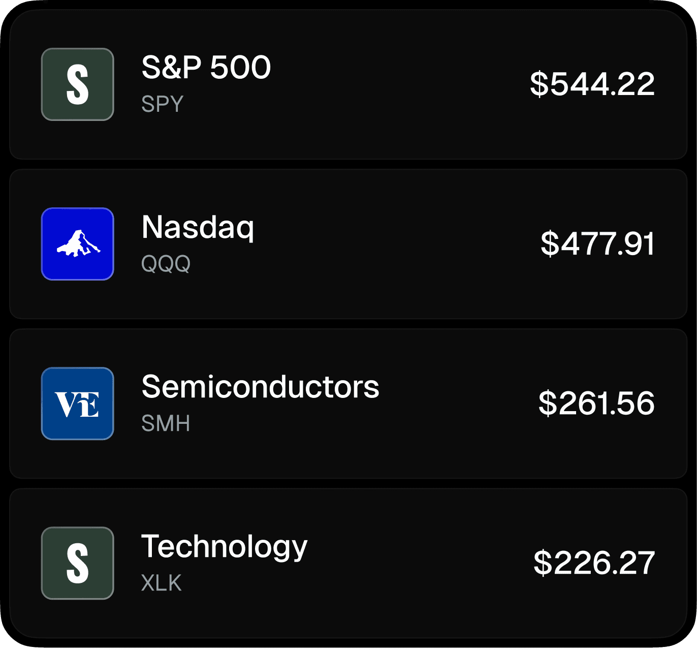Diversificá tu portafolio como un profesional. Accedé a sectores enteros como IA o Finanzas instantáneamente, también desde $1.